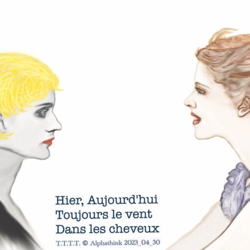Influencé par le visage de l’artiste surréaliste Meret Oppenheim (1913-1985) et un visage d’une rouquine à bicyclette.