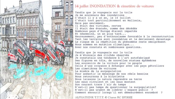 En hommage aux victimes des inondations dramatiques du 14 et 15 juillet 2021 en Belgique, en France, en Allemagne, aux Pays-Bas, en Suisse, en Autriche. Pour la Belgique, c’était 39 morts et 100.000 sinistrés.