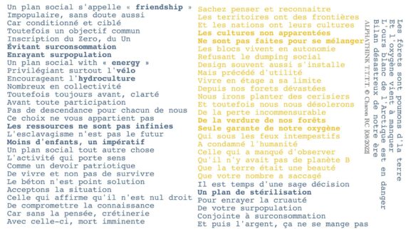 Il est temps que les territoires humainement surpeuplés prennent conscience du besoin de rationaliser leur natalité sans quoi l’oxygène, notre seul bien commun, ne sera pas suffisant. Cela compromet toute l’humanité. L’utilisation des créations « audio » ou « visuelle » sont soumises à autorisation de l’auteur. Hors de l’espace privé et pédagogique (écoles […]