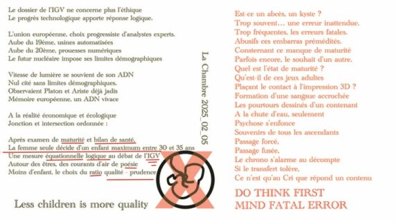 Le dossier IGV n’est mondialement plus éthique, il répond à la logique du choix du progrès. Aux métropoles s’implante l’équation rationnelle qualité-prudence. « 1 enfant maximum par femme entre 30 et 35 ans (après examen de maturité et bilan de santé, au plus tôt deux ans avant la période déterminée). L’enfant […]