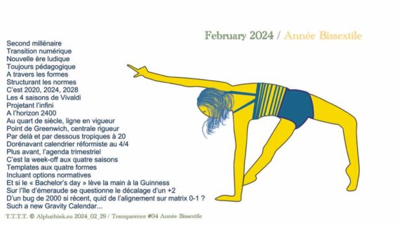 Le calendrier des 4 saisons est comme un prisme d’organisation trimestrielle où l’année civile, académique et comptable se rejoignent. Un décompte de 7 jours de repos avant l’entame d’un nouveau trimestre. Quant à 29 tous les 4ans, le monde du 0 et 1 devrait interroger sans déplacer le point vernal […]