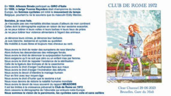 Dessin sur photographie du jeudi 29 juin 2023 (Clear Channel, gare du Midi, Bruxelles). Cheveux au vent, Vénus de Botticelli à bicyclette. Ouverture touristique de l’Italie. Précisons qu’en 1938, c’est une femme, Margherita Boniver qui présidait le ministère du tourisme italien. En 1924, une femme déjà participait au GIRO d’Italie! […]
