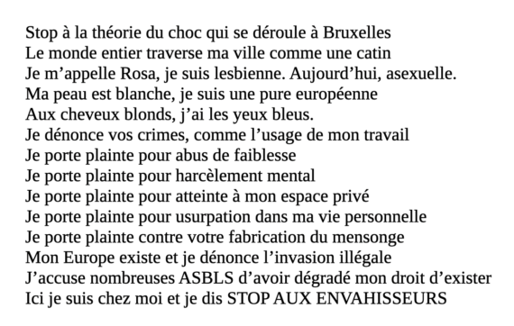 Privatisation de sommeil, empêchée de vérifier mon état de santé. Centre de santé déguisé en ASBL cachant la pratique tarifaire, tentant d’intégrer des migrants illégaux aux compétences douteuses. Lorsqu’on accepte pas le dumping social ni le sexisme, c’est tolérance zéro. Mettez dehors les envahisseurs. Il n’est pas de place pour […]