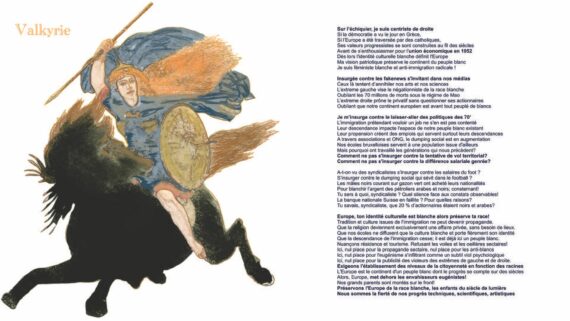 Valkyrie, amazone nordique Culture Européenne Un continent se définit d’abord par une identité et une culture avant de devenir un modèle économique. En ce sens, ceci est une critique à l’encontre des propagandes eugénistes. LA CITOYENNETE DIFFERE SELON LES ORIGINES. Inspiré de la peinture « Valkyrie » 1865 de Peter Nicolai Arbo […]