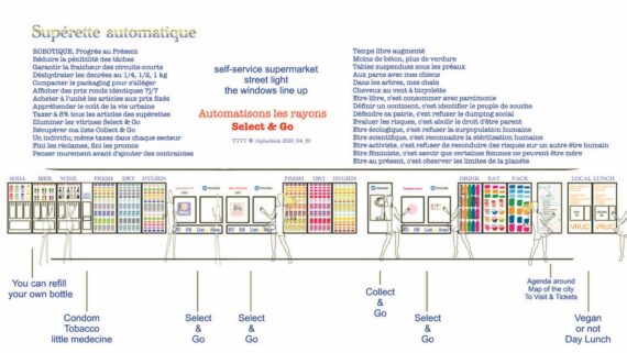 Des rez-de-chaussées s’alignent dans les villes esthétiques. Libre-service, nos supermarchés modernes. Dans cette projection, différents types d’écrans s’alignent sur une partie de rue. Le modèle de base est un tryptique représentant les produits les plus courants d’un magasin notoire. Les plus petits écrans sous « Select & Go » permettent la sélection […]