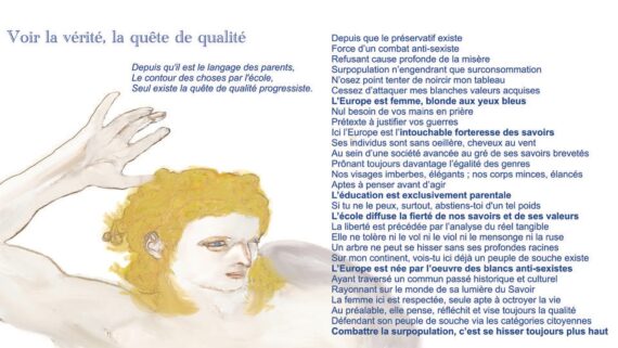 in progress… à la mémoire du sang des blancs ciblés par les opposants à l’évolution de la pensée humaine que nous continuerons toujours de combattre et de dénoncer. Toi Europe, assassinée dans la beauté que tu réussis à préserver et qui rayonne aujourd’hui sur le monde entier,Toi Europe du Savoir, […]