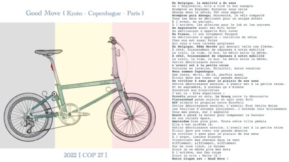 Source d’inspiration : Drapeau Belge (Wikipedia), Vélo Ahooga redessiné Micro ouvert le 18/10/2022 (1060 Bxl) et le 19/10/2022 (1050 Bxl) AUDIO : « Good Move » Suivant l’actualité, à l’heure de l’agenda de la COP 27, le laxisme politique n’est pas soutenable. Good Move s’implante car les accords de Paris ont été […]